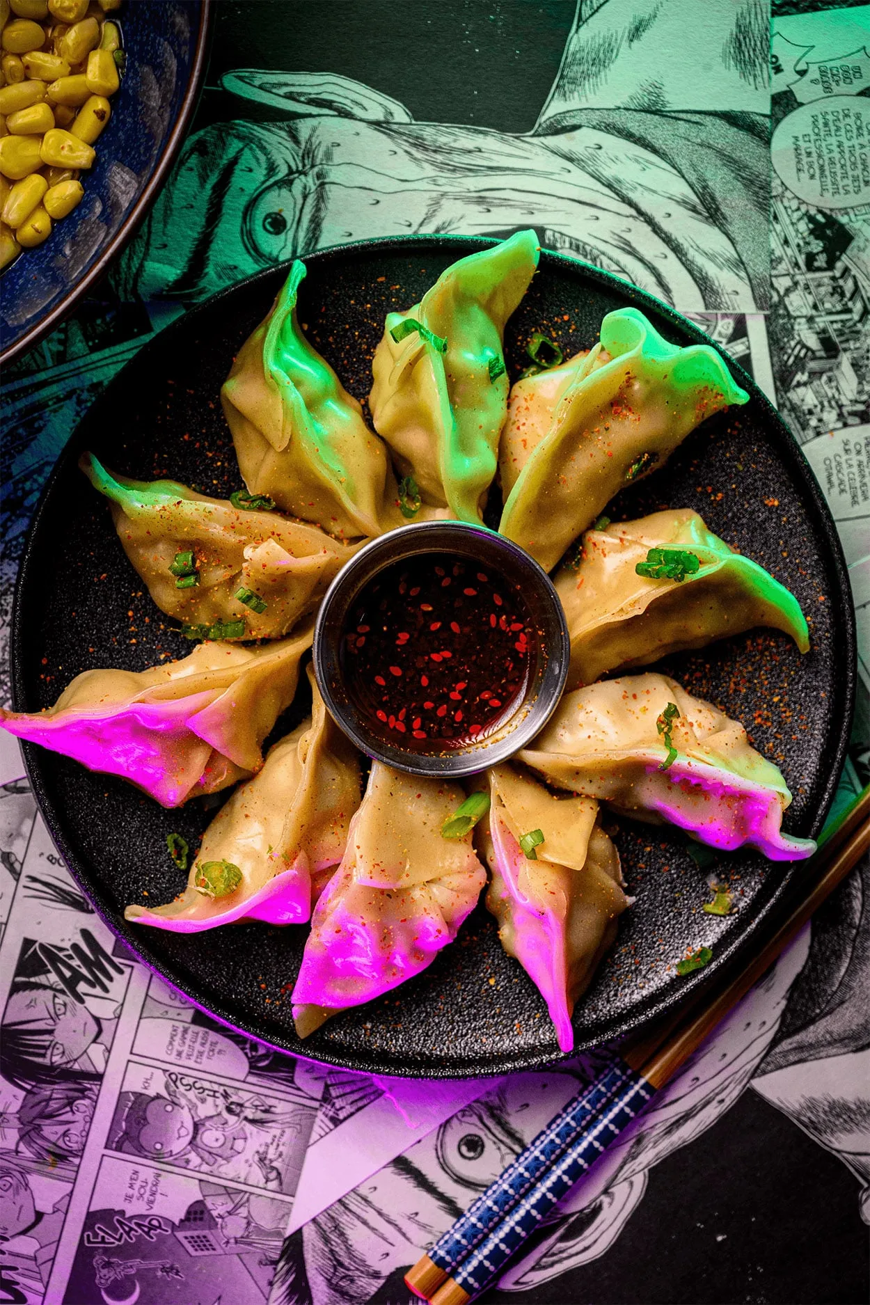Nos dumplings sont façonnés à partir de pâtes maison élaborées avec du blé québécois des Moulins de Soulanges. Trois variétés savoureuses s’offrent à vous : porc, légumes ou bœuf bulgogi.